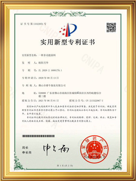 一種多功能面料證書