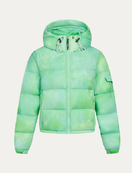 這款清新漸變綠扎染短款羽絨服,采用高蓬松保暖羽絨填充,搭配可拆卸連帽與防風袖口,兼顧顏值與戶外實用性。